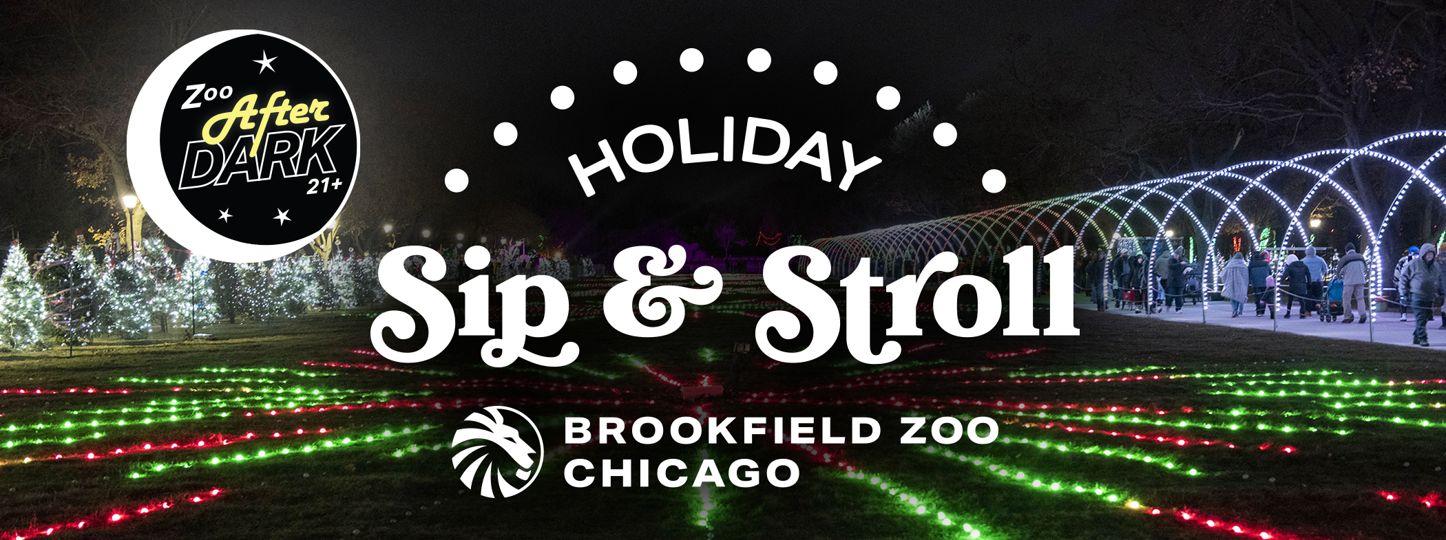 Be among the first to experience the enchantment of Holiday Magic at Brookfield Zoo Chicago with our exclusive Zoo After Dark: Holiday Sip & Stroll event. This 21-and-over evening offers a festive mix of holiday cheer, warm drinks, and seasonal cocktails as you explore the zoo’s dazzling holiday lights before the main event opens to the public. Dance the night away to live beats at the dance party hosted by DJ Nurotic, sip on exclusive drinks crafted just for the evening, and soak in the magic of the season in an adults-only atmosphere. Gather your friends for a one-of-a-kind holiday celebration filled with lights, music, and memories to last a lifetime.